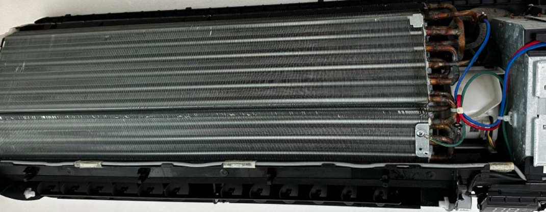 에어컨 내부에서 찬 바람을 만드는 부분으로, 이곳에 먼지나 곰팡이가 많이 쌓이면 냄새나 성능 저하가 발생합니다.